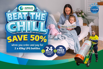 Order and pay for 2 x 45kg LPG bottles of gas and receive 50% off your first gas order! PLUS 24 months fixed branch pricing! Offer available from participating Supagas branches and selected agents only. Contact your local...
